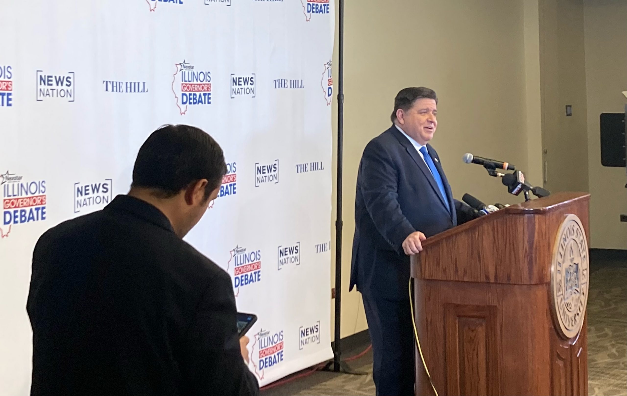Jake Sermersheim | Illinois Governor JB Pritzker speaking to the press after his debate with Darren Bailey.