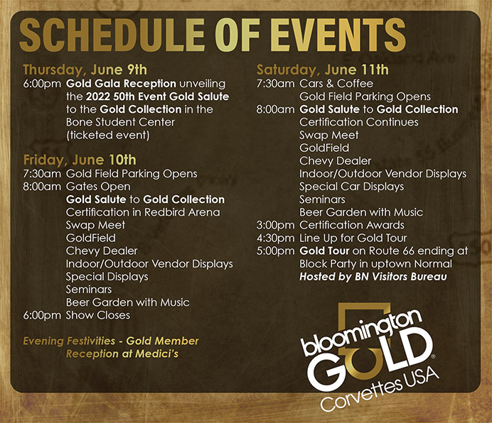 Guy Larsen, owner of Bloomington Gold Corvettes, told WMBD “We’re expecting to have on Friday, weather holding, we should have maybe 2,000 and on Saturday I’d guess around 3,500 or 4,000 Corvettes.” The show attendance could reach upwards of 20,000 people.