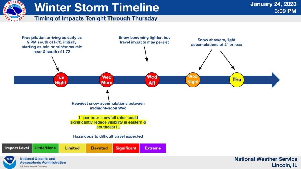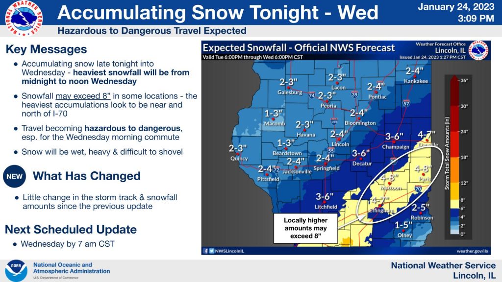 Below are the latest projections from the National Weather Service office in Lincoln, IL: